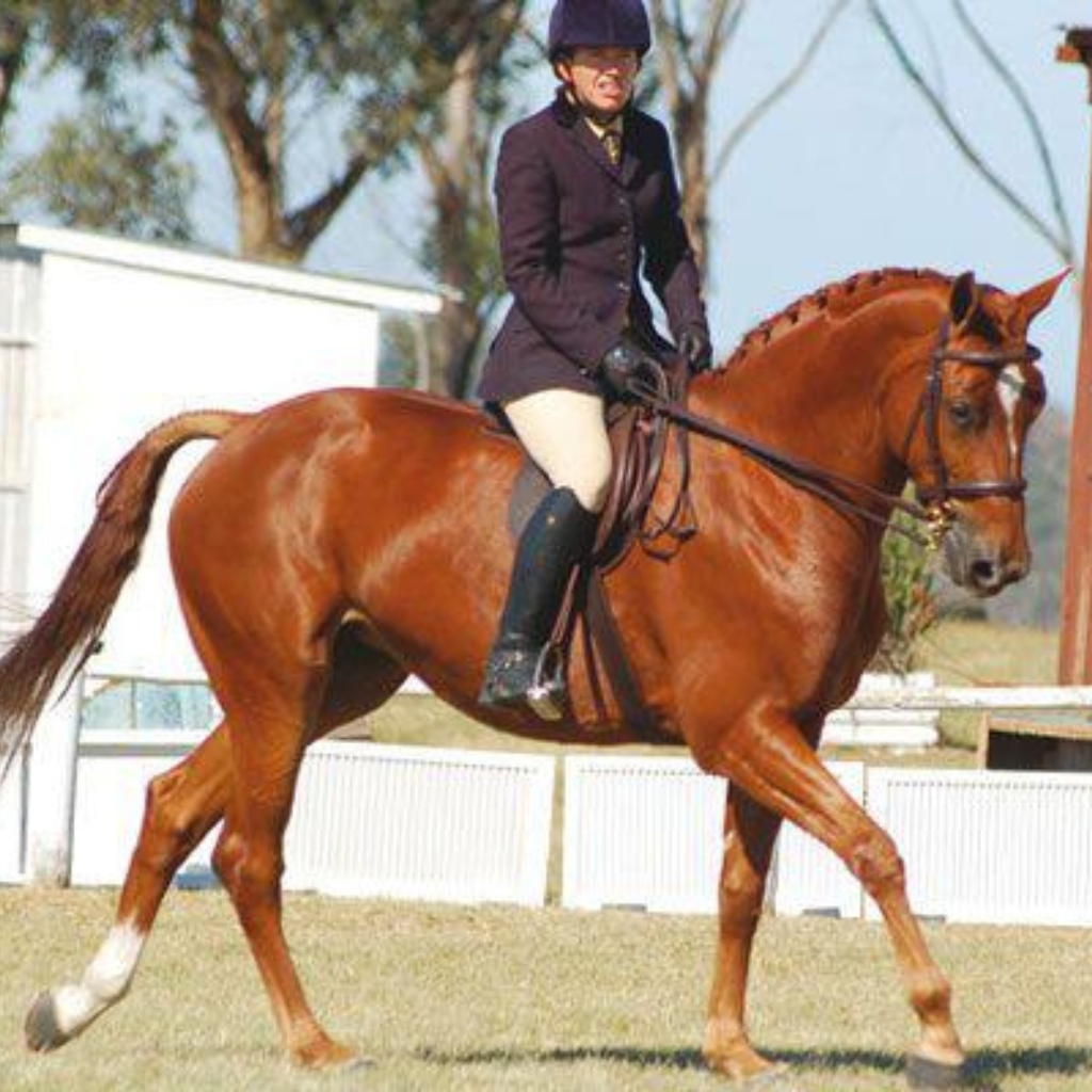 Swazi- Lizkhar Debutante 16.1hh, Chestnut SAW mare by Delgardo (HANN) out of Rocky M Destiny (HANN) (Anschluss/Graveur/Admiral). Currently a foundation broodmare at Midas Touch Stud